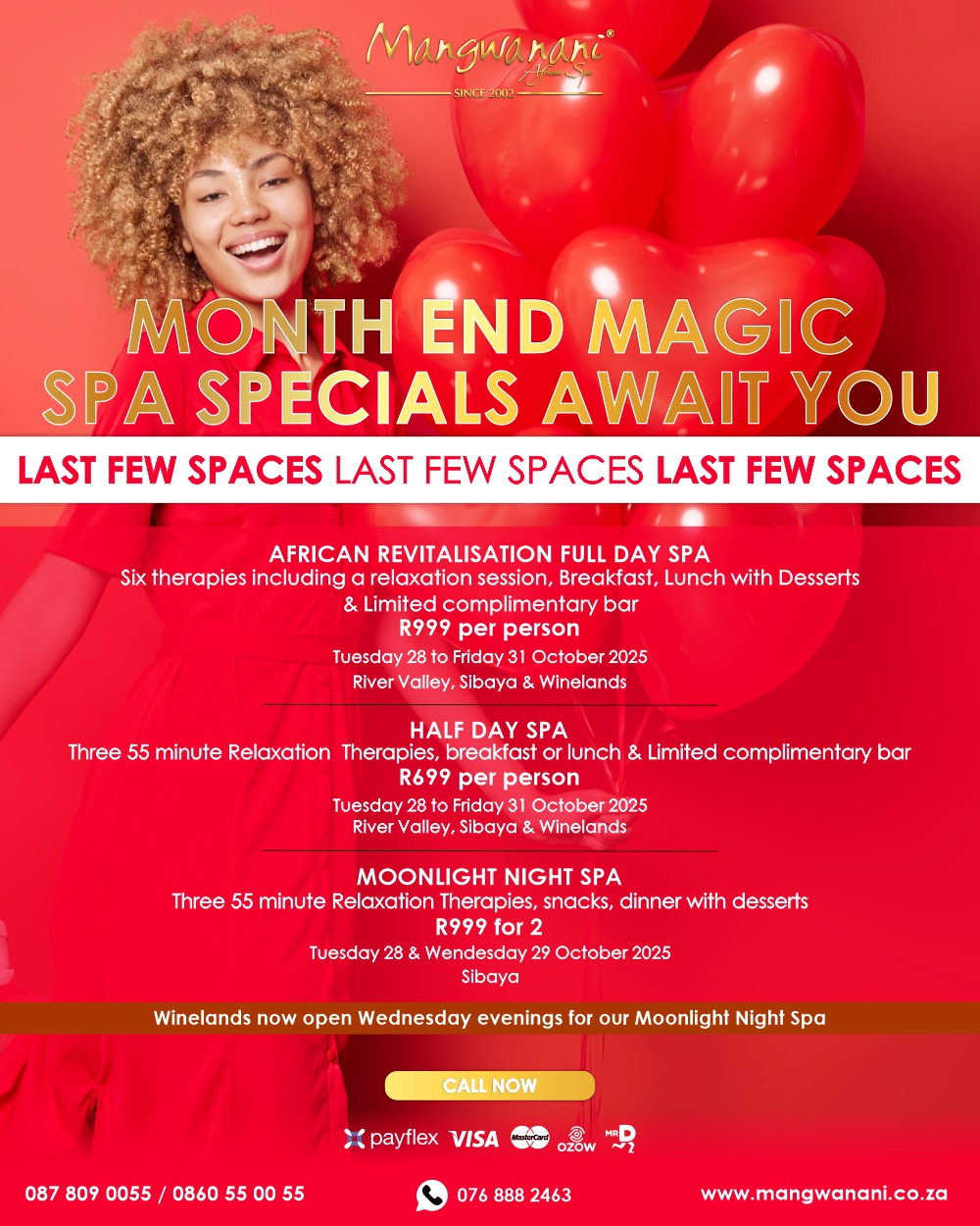 β¨ African Revitalisation Full Day Spa β 8 Hours (08:00 β 17:00)
